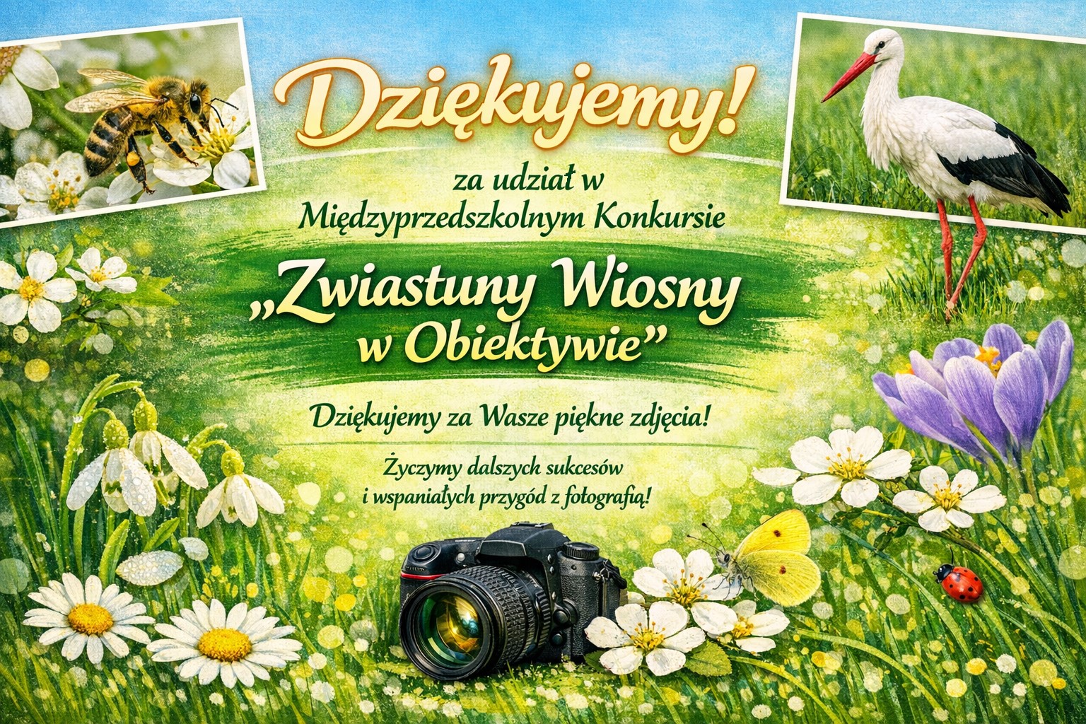 Z przyjemnością informujemy, że nasz wiosenny konkurs został rozstrzygnięty. Otrzymaliśmy wiele zdjęć, które zachwyciły komisję swoją jakością i pięknem. Na zwycięzców czekają dyplomy oraz nagrody, które zostaną wręczone im osobiście. Wszystkie dzieci biorące udział w konkursie otrzymają pamiątkowe dyplomy. Dziękujemy wszystkim uczestnikom za udział i ogromne zaangażowanie.