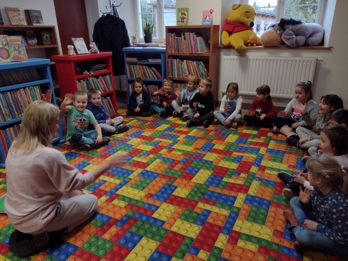 We wtorek 30.XI., przedszkolaki z oddziału V, zostały zaproszone do Gminnej Biblioteki w Kurowie na bardzo ciekawe spotkanie z okazji „Dnia Pluszowego Misia”.