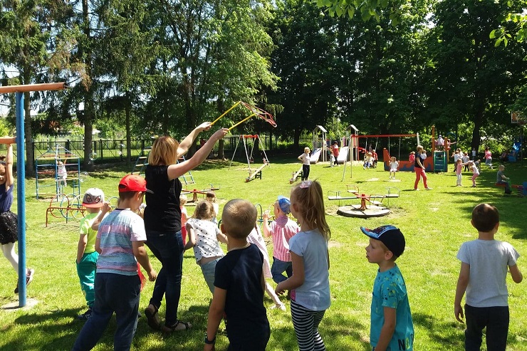 Niektóre tańczyły przy dźwiękach piosenek dziecięcych, inne korzystały ze sprzętu terenowego. Największą atrakcją były bańki mydlane.