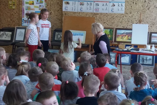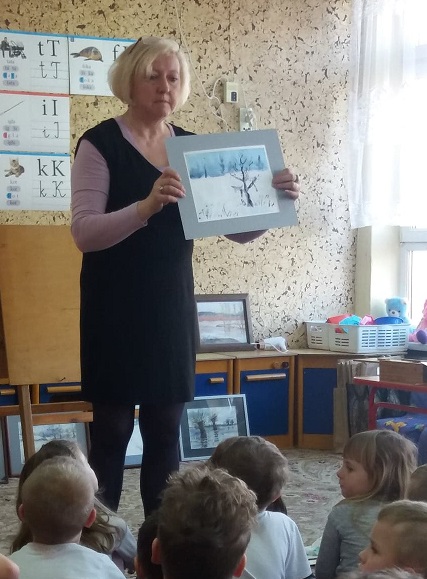 W poniedziałek 11 marca odwiedziła nas pani Anna Butryn - malarka. Zaprezentowała dzieciom swoje obrazy wykonane różną techniką - szkic ołówkiem, piórkiem, węglem, obrazy malowane farbami olejnymi i akwarelowymi.