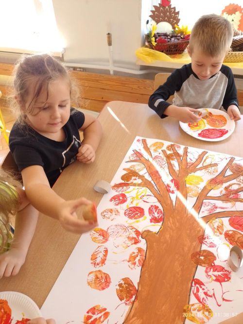 Dnia 10 października przedszkolaki z grupy VI obchodziły Światowy Dzień Drzewa. W tym dniu odbyły się zajęcia związane z tematyką drzew, dzieci poznały budowę drzewa i dowiedziały się jak wielkie znaczenie mają drzewa dla człowieka, zwierząt i przyrody. W czasie zabaw badawczych w ogrodzie przedszkolnym dzieci oglądały drzewa, dotykały kory, liści i owoców. Na zakończenie przedszkolaki wykonały wspólną prace plastyczną „Jesienne drzewo” według własnego pomysłu. Święto Drzewa to doskonała okazja aby kształtować postawę ekologiczną wśród najmłodszych dzieci.
