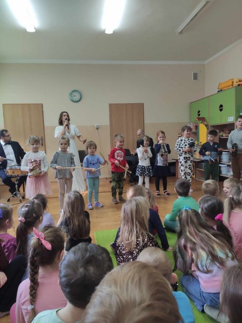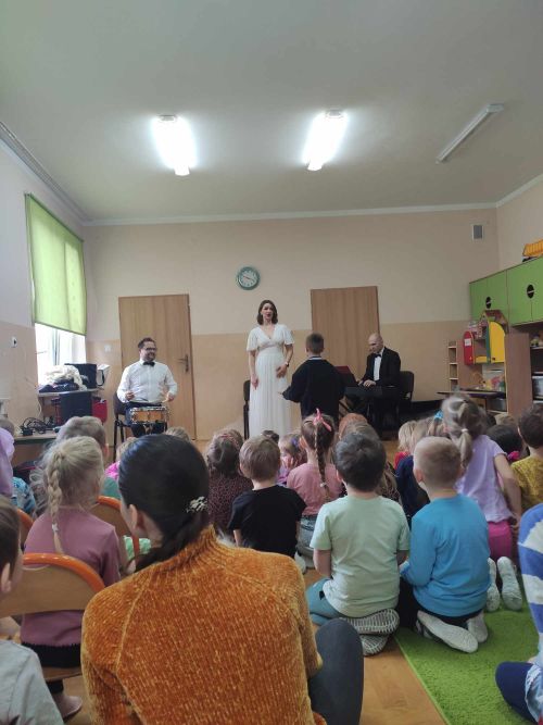 Przedszkolaki miały okazję posłuchać pieśni operowej, oraz poznały nazwy głosów męskich (m.in. tenor, baryton i bas) i żeńskich (sopran, mezzosopran i alt). Muzycy zaprosili dzieci do udziału w zabawach rytmicznych. Na zakończenie, przedszkolaki zagrały w prawdziwej orkiestrze.