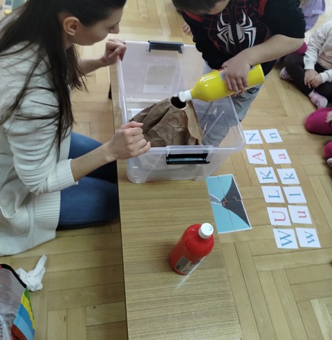 W ostatnich dniach dzieci z młodszych i starszych grup wzięły udział w zajęciach i zabawach pozwalających na zrozumienie różnych zjawisk fizycznych. Dzieci z ogromną uwagą i zaciekawieniem oglądały wykonywane eksperymenty, a także pomagały w ich przeprowadzeniu! :) Poprzez doświadczenia zapoznały się ze zjawiskiem elektrostatyczności oraz tego, że niektóre substancje wchodzą ze sobą w reakcję. Dzieci były zachwycone tym co działo się w naszym przedszkolnym laboratorium! :) Zdecydowanym faworytem był wybuchający wulkan! Na zakończenie dzieci mogły wykonać własne wulkany :)