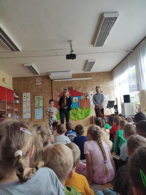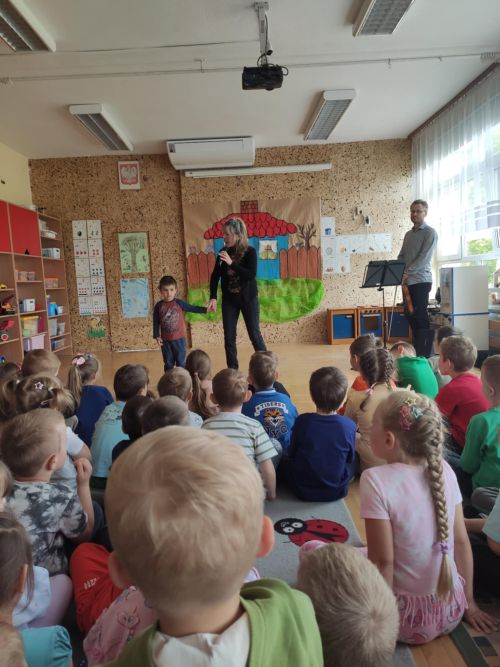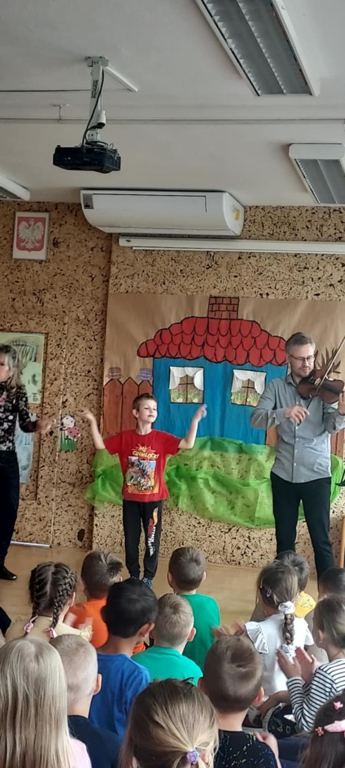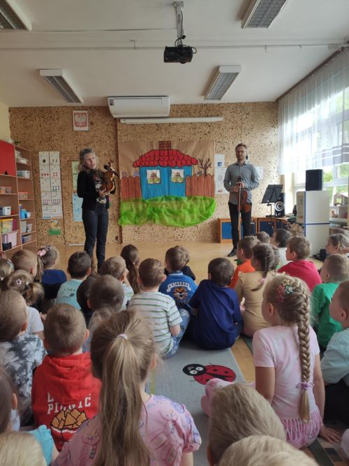 Na dzisiejszym koncercie, "Pani Muzyczka" zapoznała dzieci dźwiękiem i z budową skrzypiec. Przedszkolaki miały okazję posłuchać utworów skomponowanych przez Stanisława Moniuszko. Na zakończenie, dzieci wspólnie z przedszkolnym "dyrygentem" - rytmicznie wyklaskały wesołą melodię.