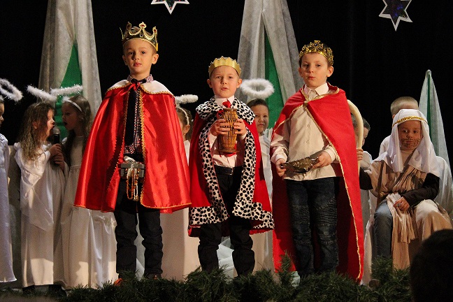 Tradycyjnie, jak co roku w niedzielę poprzedzającą Święta Bożego Narodzenia w sali widowiskowej GOK odbyły się Jasełka w wykonaniu dzieci z naszego przedszkola. Na scenie pojawiły się anioły, pasterze, Trzej Królowie, Józef i Maryja z Dzieciątkiem.