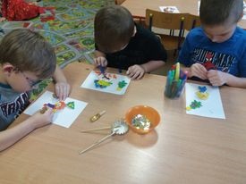 Przedszkolaki również wykonały ozdoby choinkowe. Malowały i dekorowały aniołki z masy solnej, które wspólnie z rodziną wykonała pani M. Chrzan.