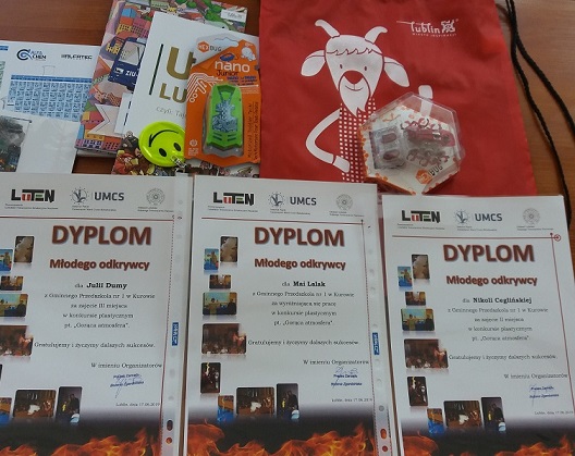W konkursie plastycznym „Gorąca atmosfera” organizowanym podczas pokazów na UMCS w Lublinie nasze przedszkolaki: Nikola Ceglińska, Julia Duma, zdobyły II i III miejsce oraz Maja Lalak wyróżnienie. Zwycięzcom gratulujemy.