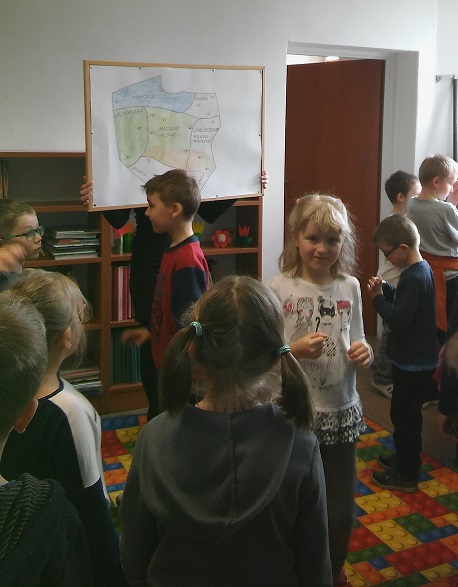 W ostatnim tygodniu wszystkie grupy przedszkolne uczestniczyły w zajęciach zorganizowanych przez Gminną Bibliotekę w Kurowie. Tematem zajęć było "Jesteśmy Polakami - wędrówki po regionach Polski"