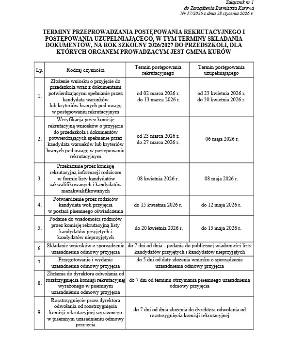 Proces rekrutacyjny rozpocznie się od składania przez rodziców dzieci już uczęszczających do przedszkola deklaracji o kontynuowaniu wychowania przedszkolnego w kolejnym roku szkolnym.