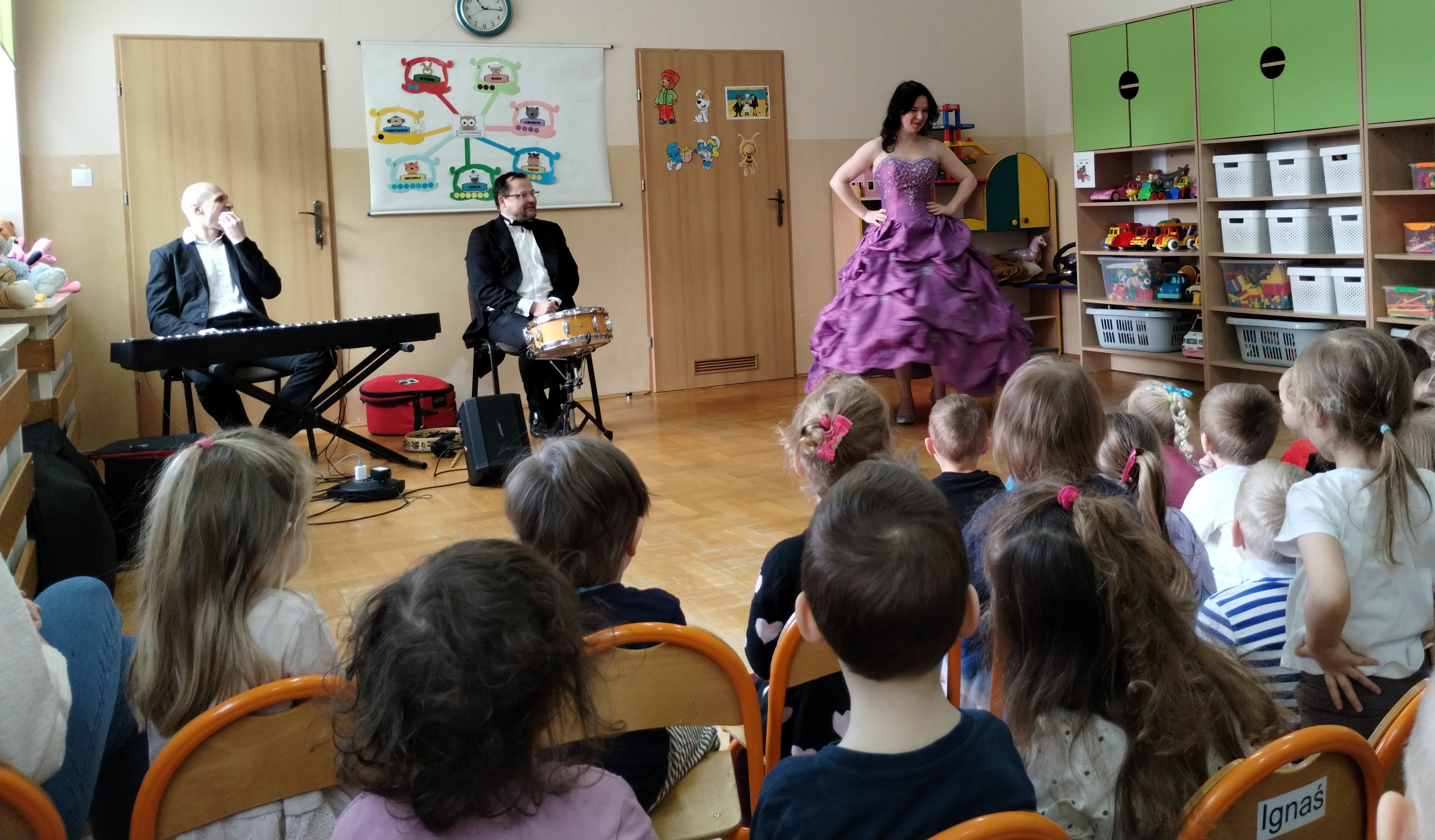 W naszym przedszkolu odbyło się niezwykłe muzyczne wydarzenie, które przeniosło dzieci w świat wielkiej sceny. Gościliśmy muzyków z filharmonii oraz śpiewaczkę, którzy przygotowali dla najmłodszych koncert pt. „Opera czy operetka?”.
