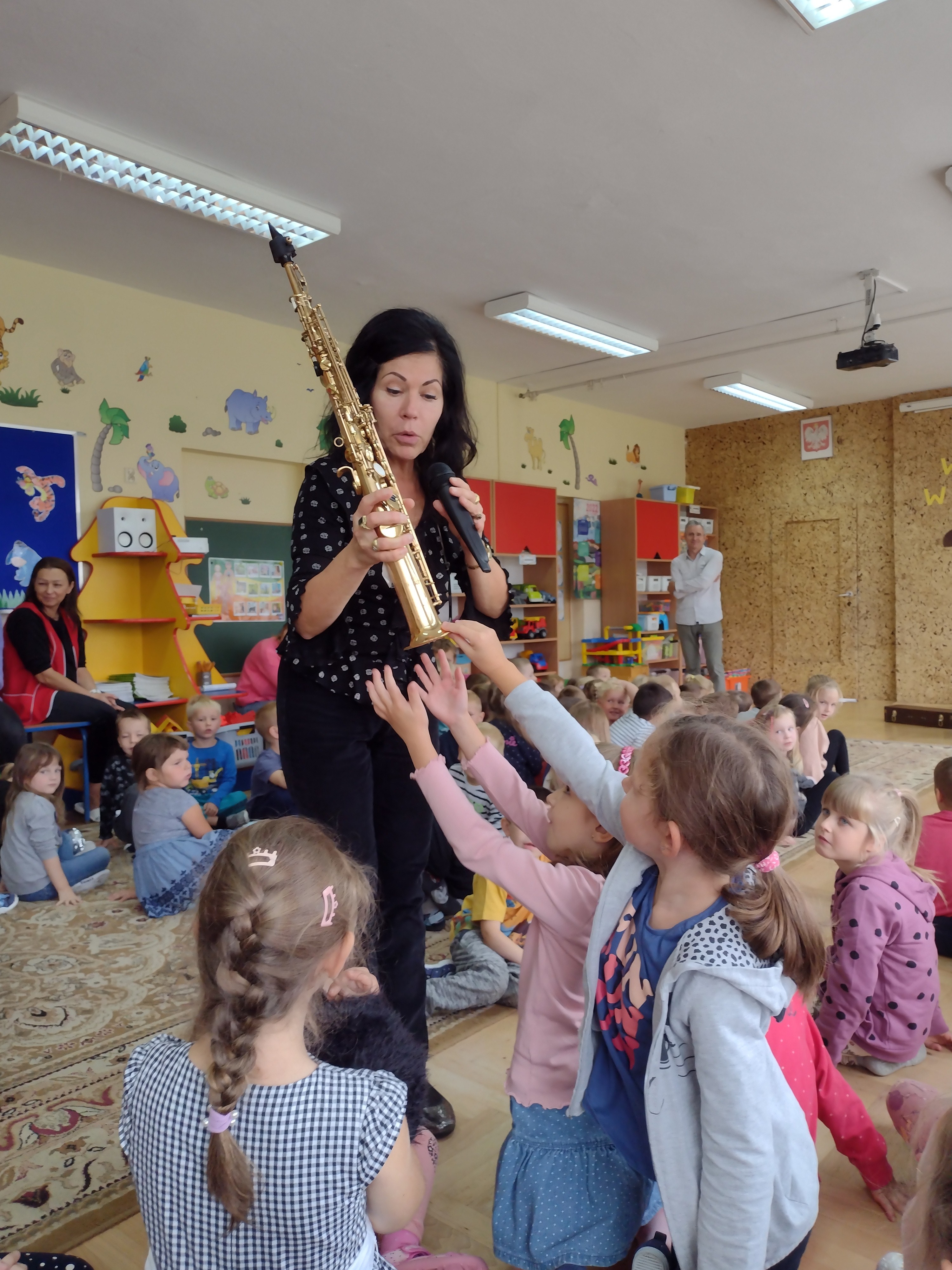 Dziś w przedszkolu odwiedziła nas Pani Muzyka. Dzieci miały możliwość zapoznania się z wyglądem i budową, klarnetu i saksofonu.