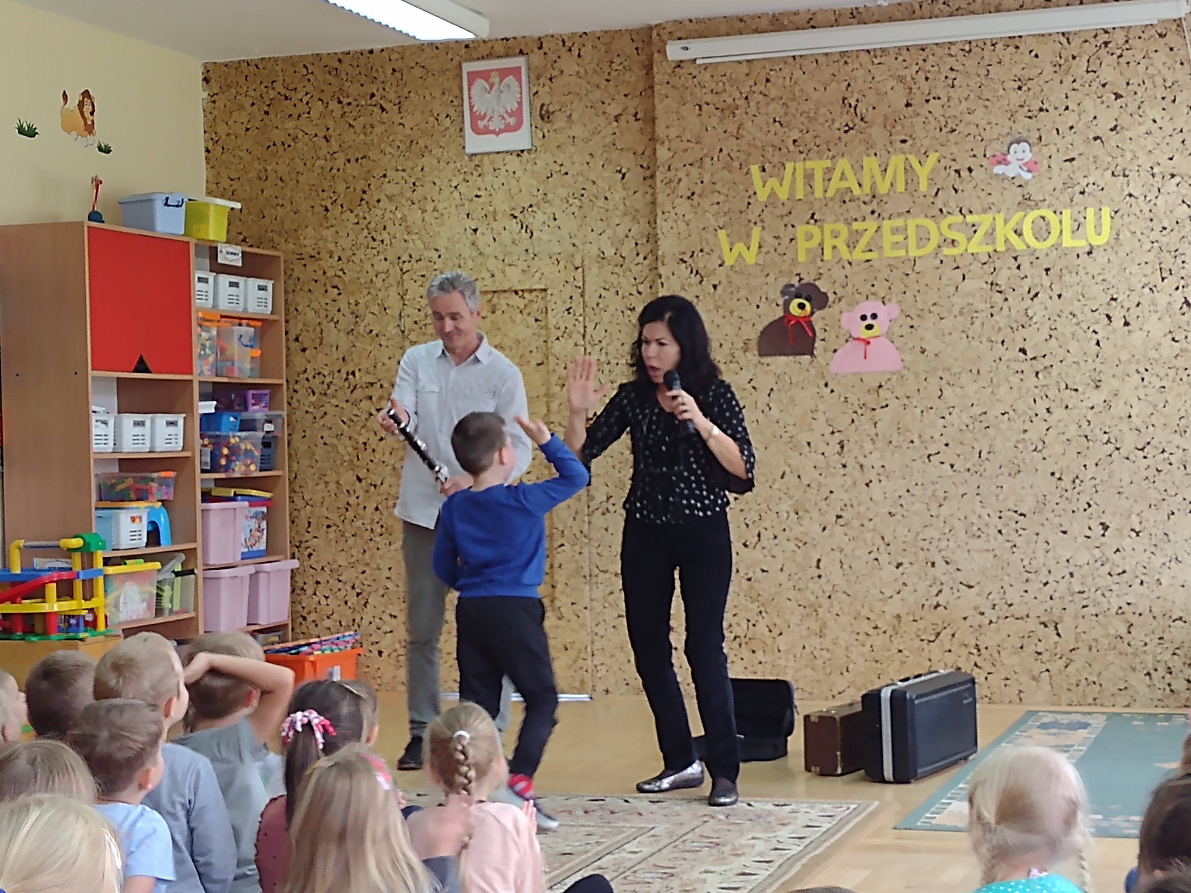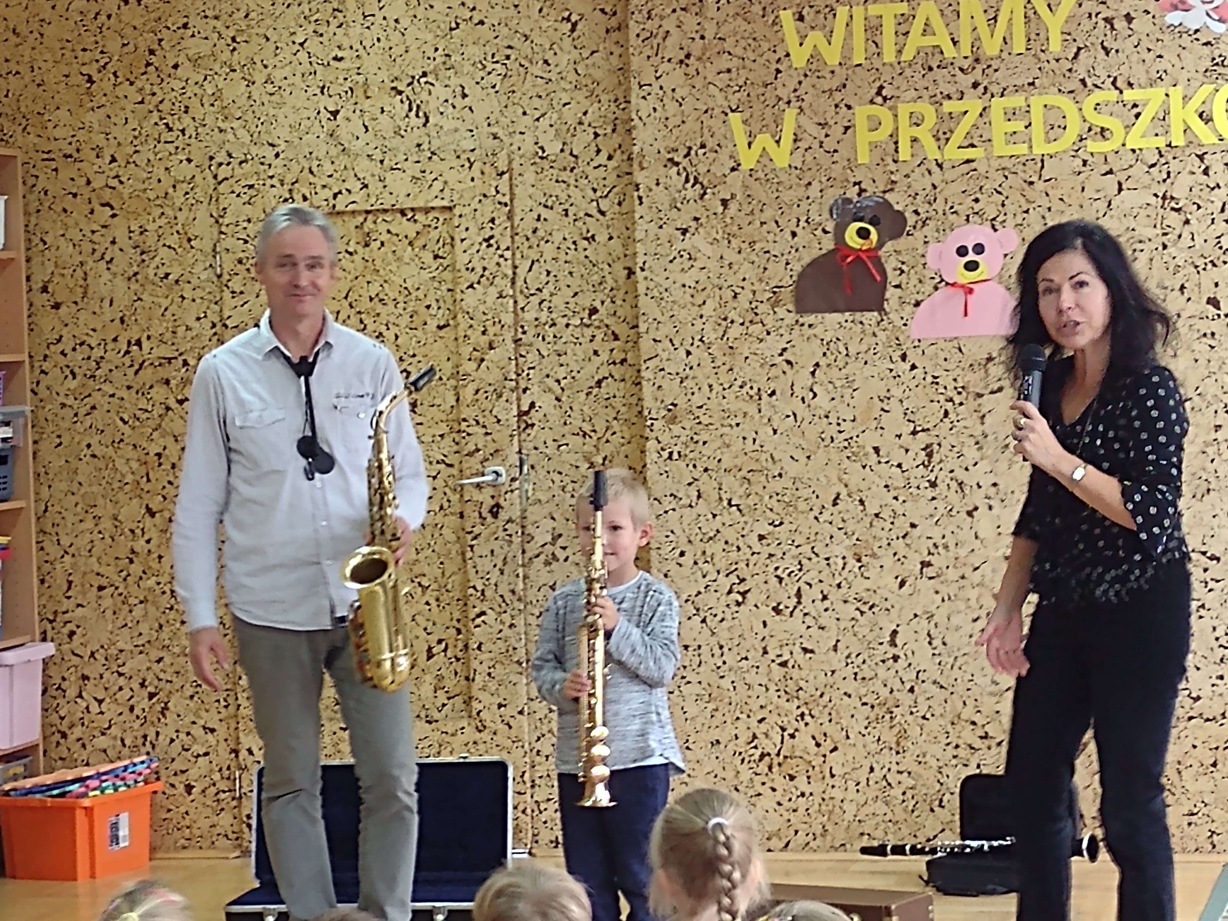 Wszystkim bardzo podobały się zabawy i zagadki przy dźwiękach saksofonu i klarnetu.