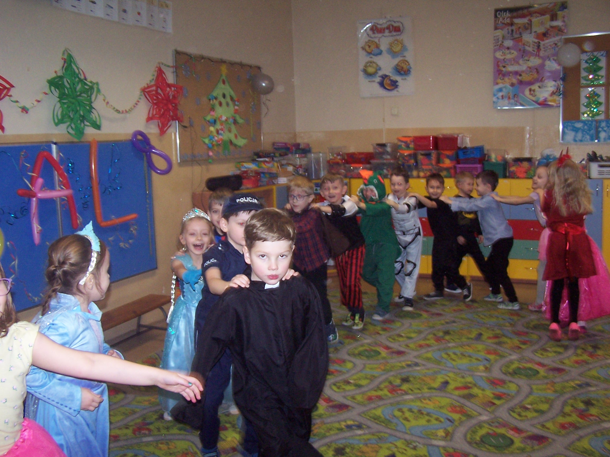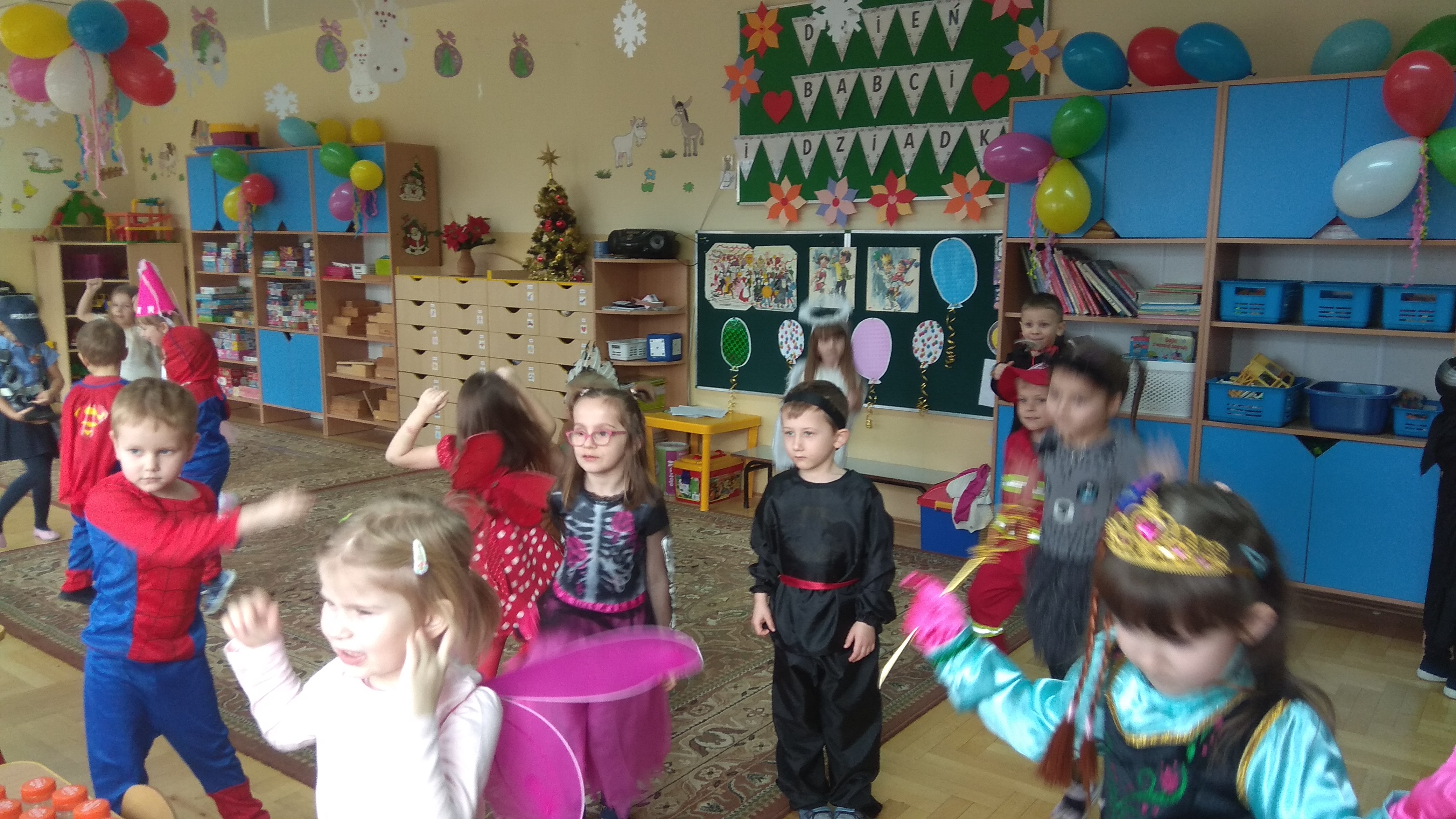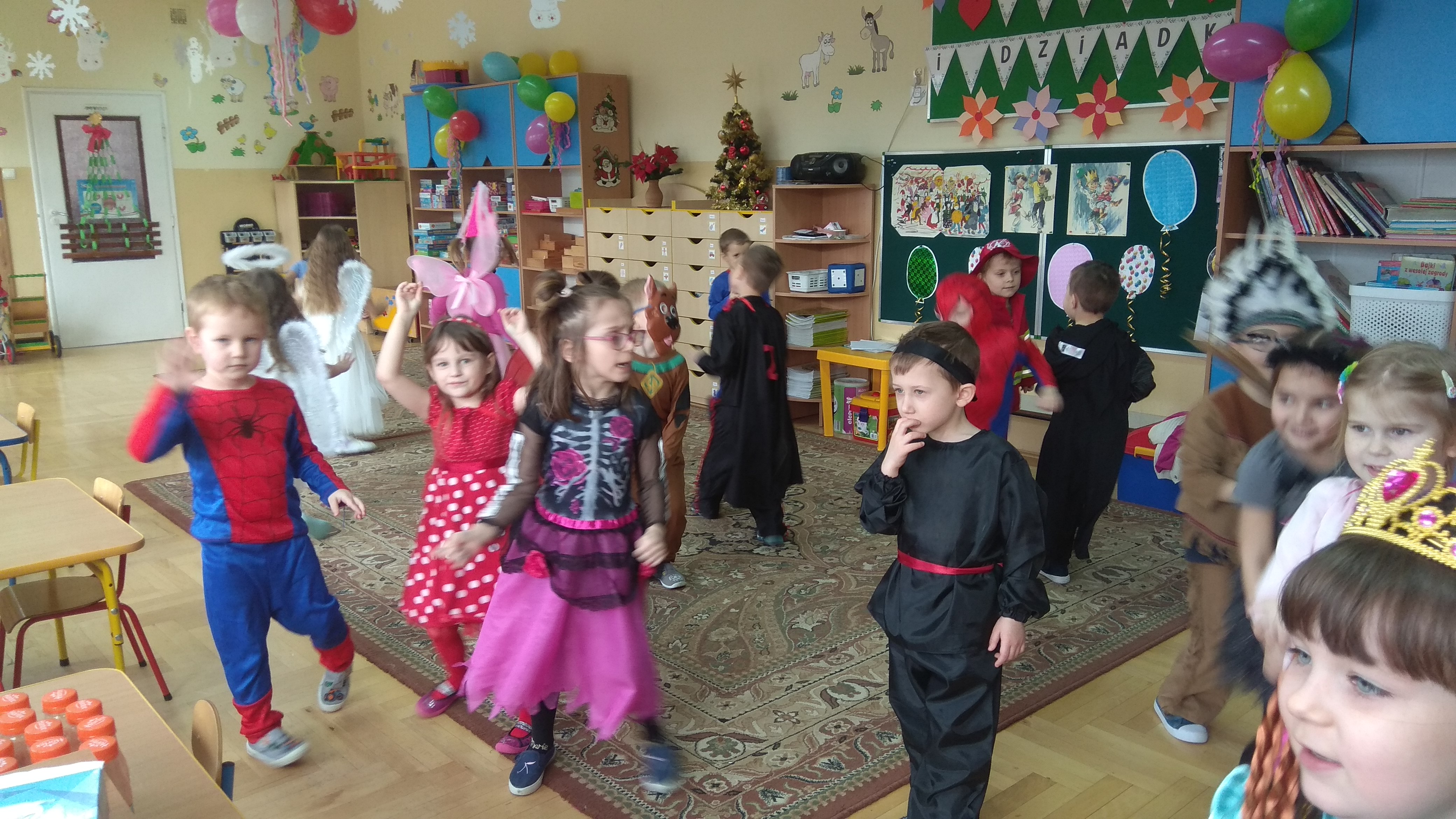 Tego dnia już od rana w przedszkolu pojawiały się kolorowe postacie. Dzieci przebrane były za bohaterów znanych bajek, w salach przedszkolnych można było spotkać wróżki, królewny, księżniczki, kotki, motylki, policjantów, Spider-Mana, Batmana itp. Trudno zliczyć i wymienić te wszystkie postacie.