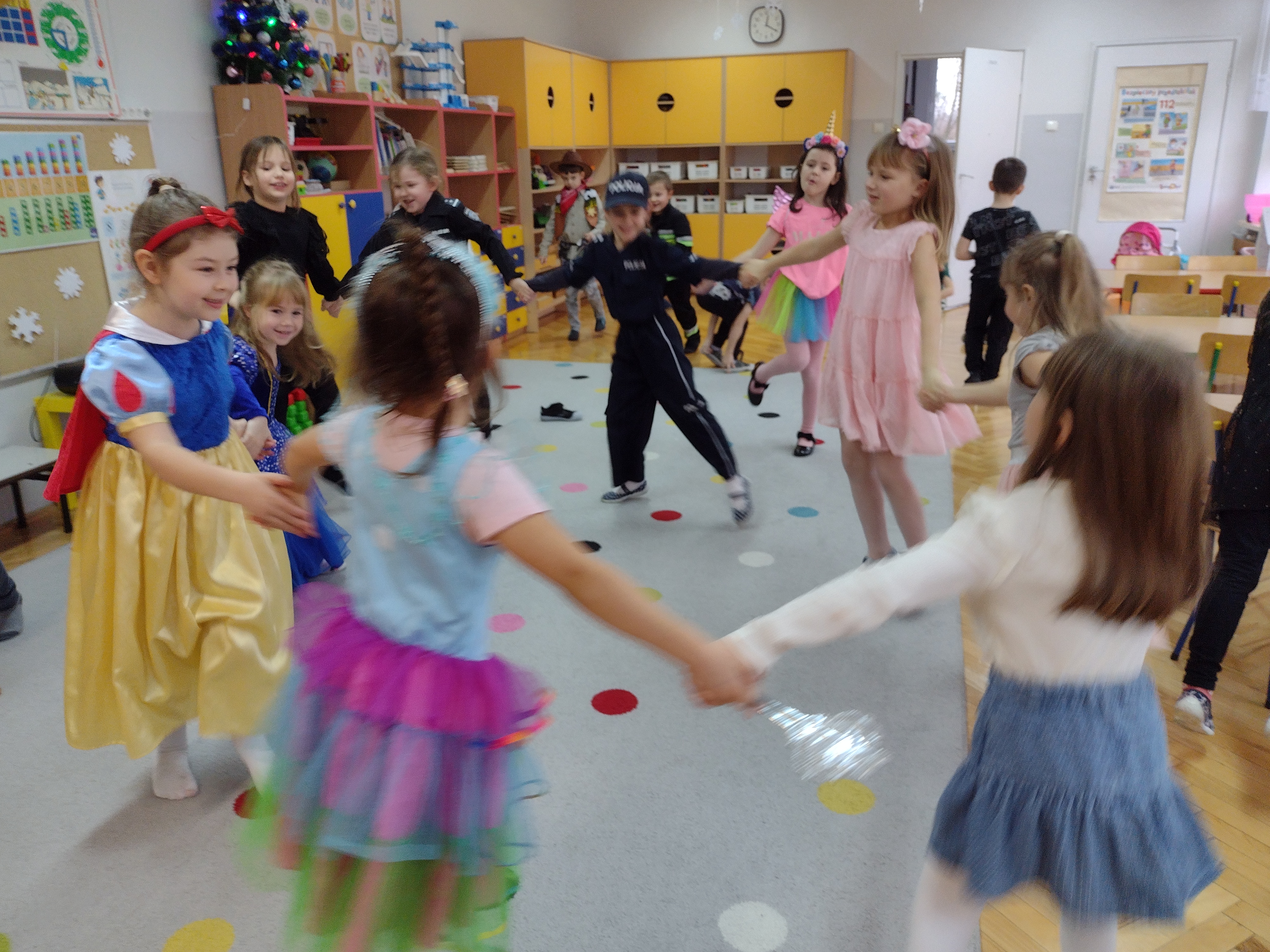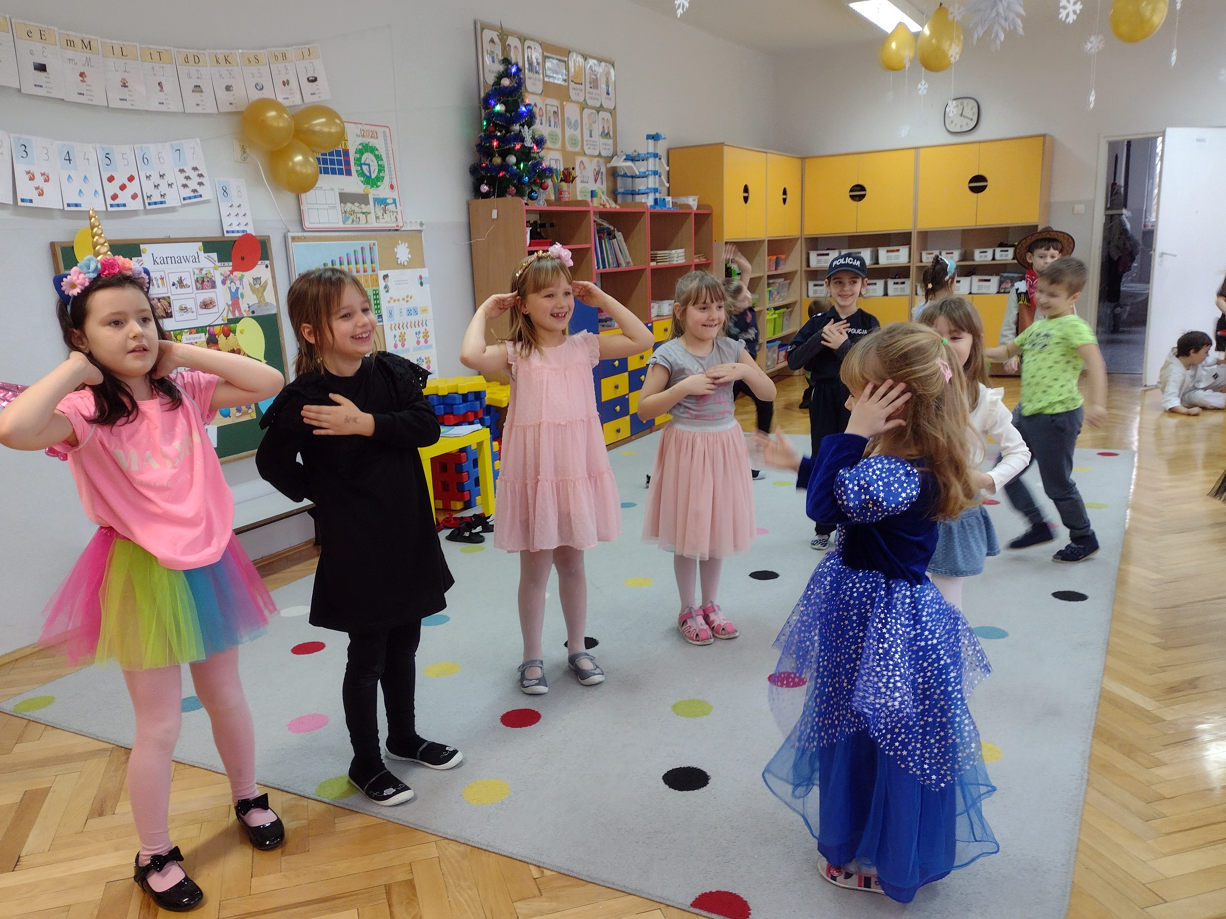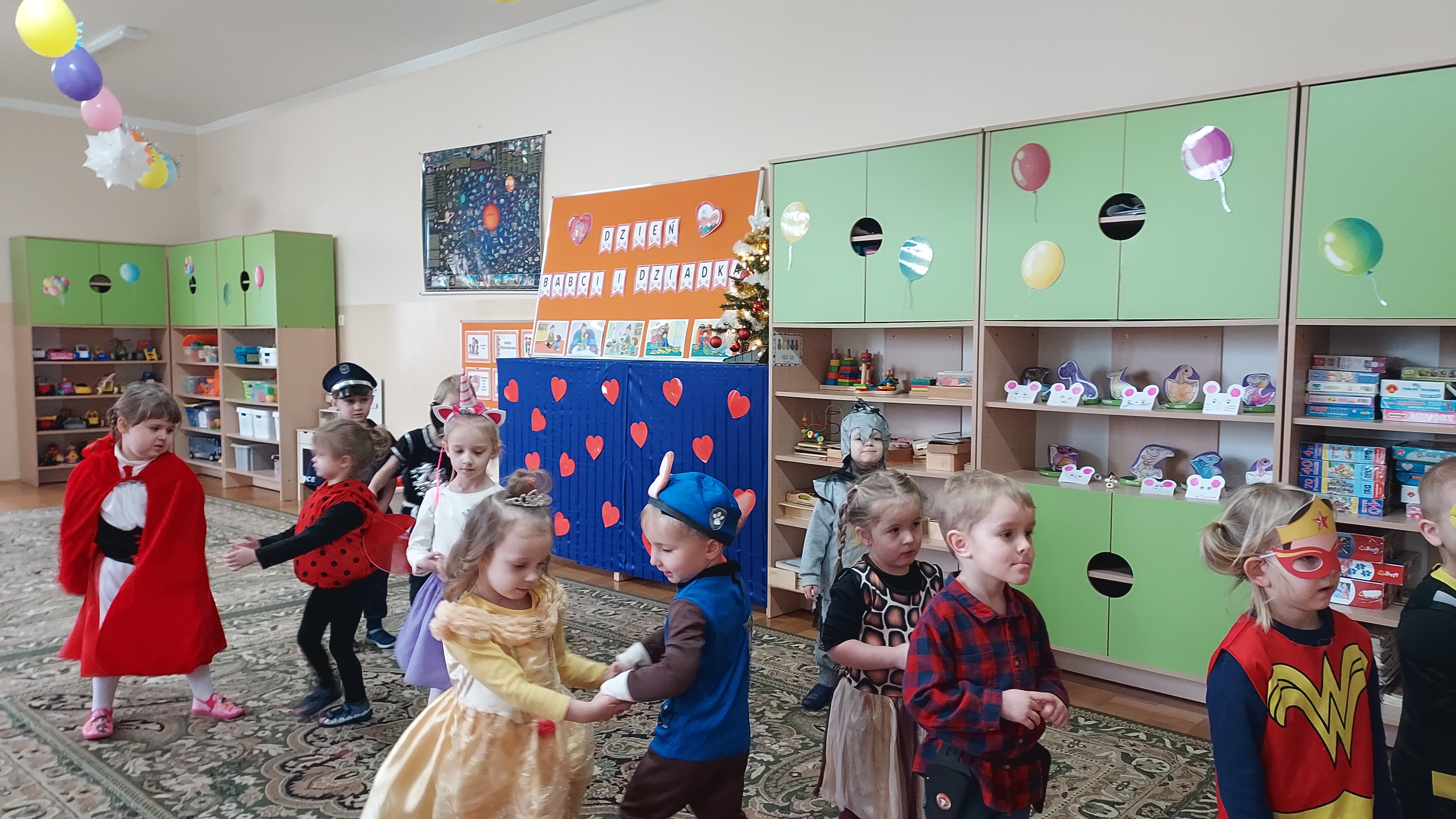 Tego dnia już od rana w przedszkolu pojawiały się kolorowe postacie. Dzieci przebrane były za bohaterów znanych bajek, w salach przedszkolnych można było spotkać wróżki, królewny, księżniczki, kotki, motylki, policjantów, Spider-Mana, Batmana itp. Trudno zliczyć i wymienić te wszystkie postacie.