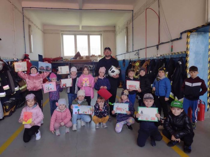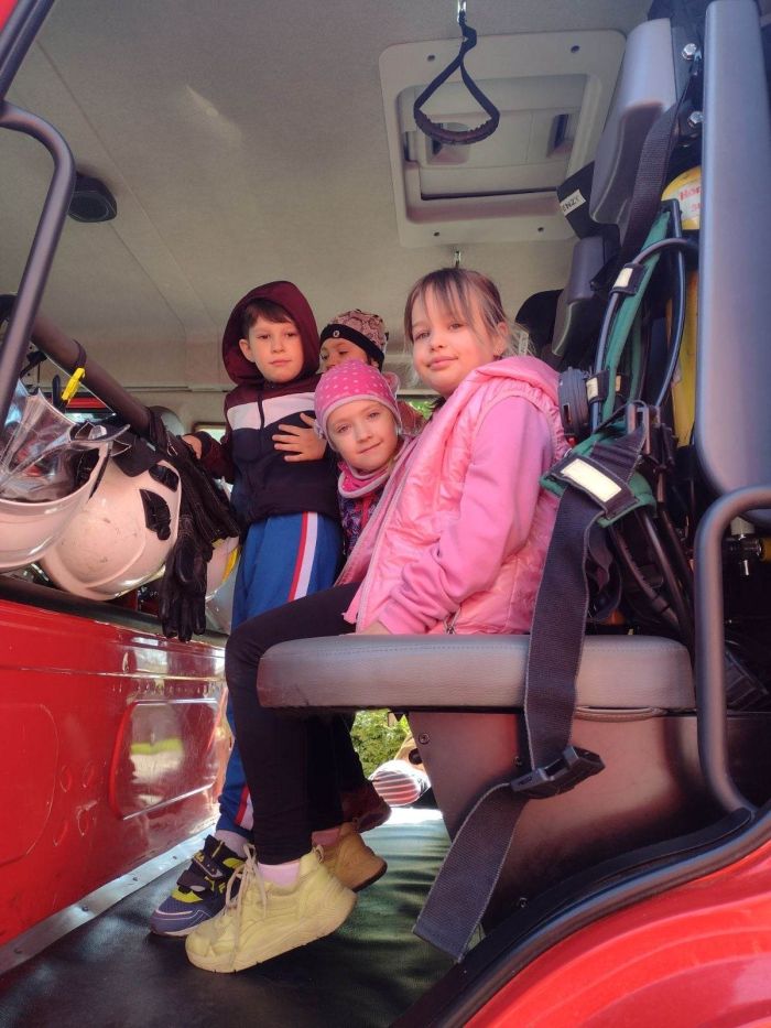 W dniu dzisiejszym, wszystkie dzieci z naszego przedszkola wybrały się na wycieczkę do Ochotniczej Straży Pożarnej w Kurowie. Dzięki życzliwości Panów Strażaków, przedszkolaki z bliska obejrzały samochody i sprzęt pożarniczy. Wielką atrakcją było wejście do wozu strażackiego i przymierzenie hełmu. Po takiej wycieczce dzieciaki zgodnie przyznały, że ten zawód bardzo im się podoba, a niejedno dziecko w przyszłości chciałoby zostać strażakiem.