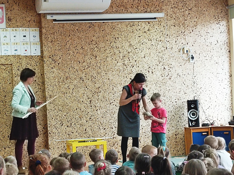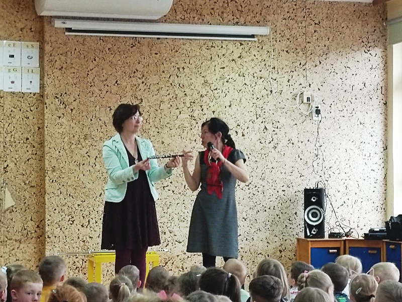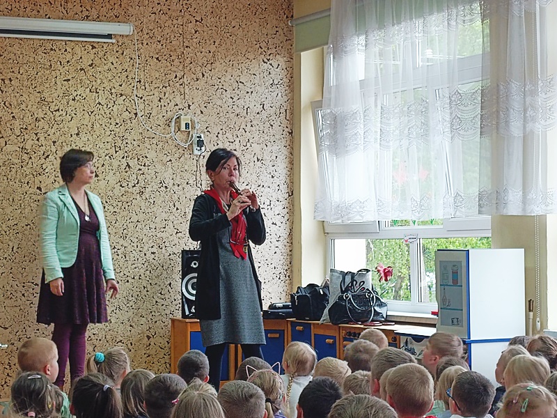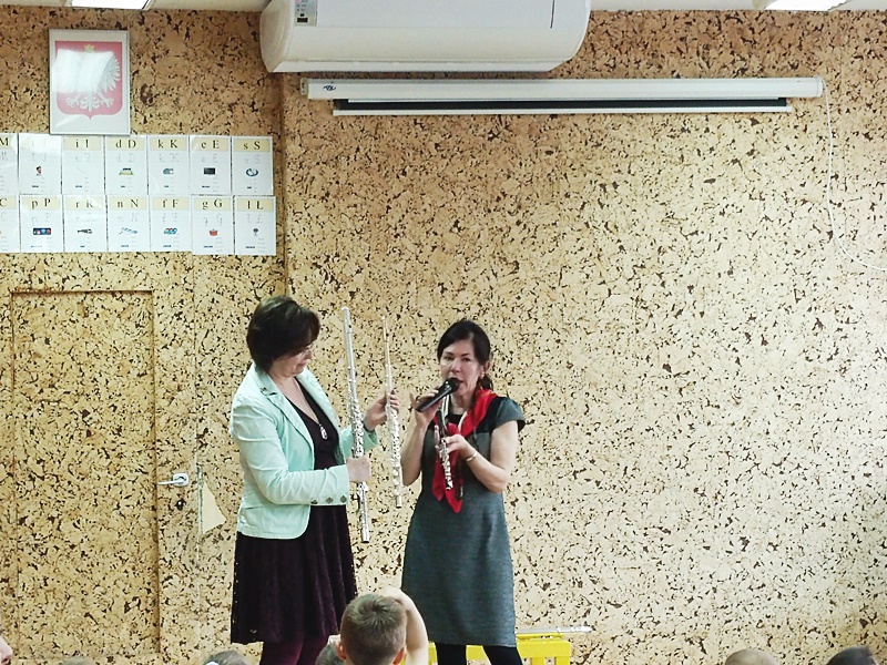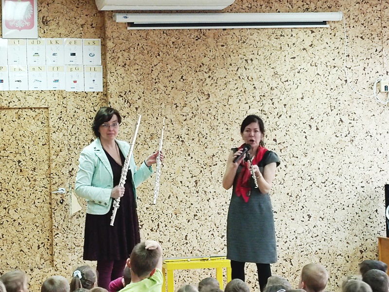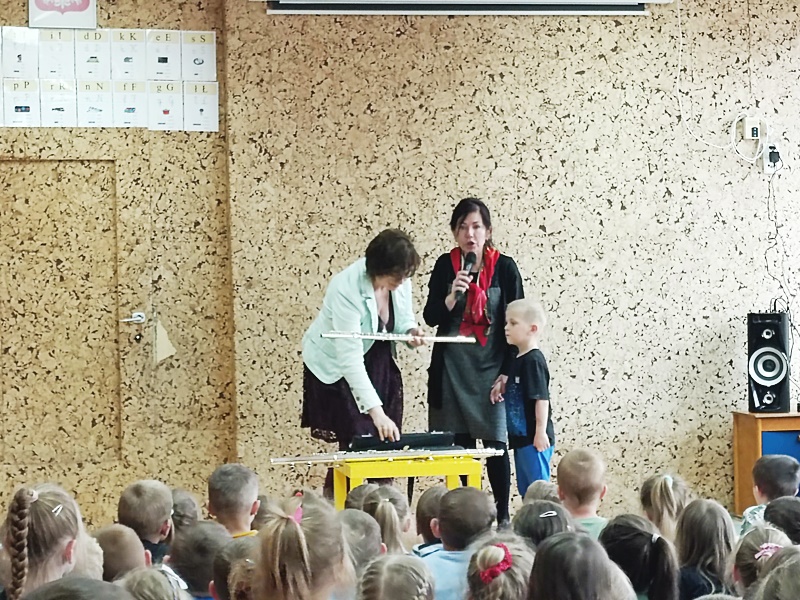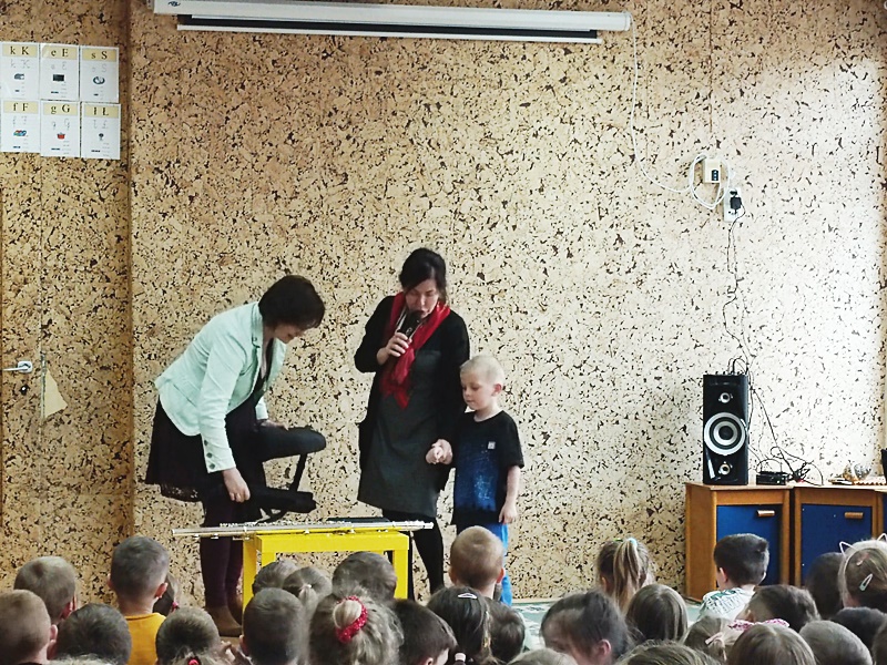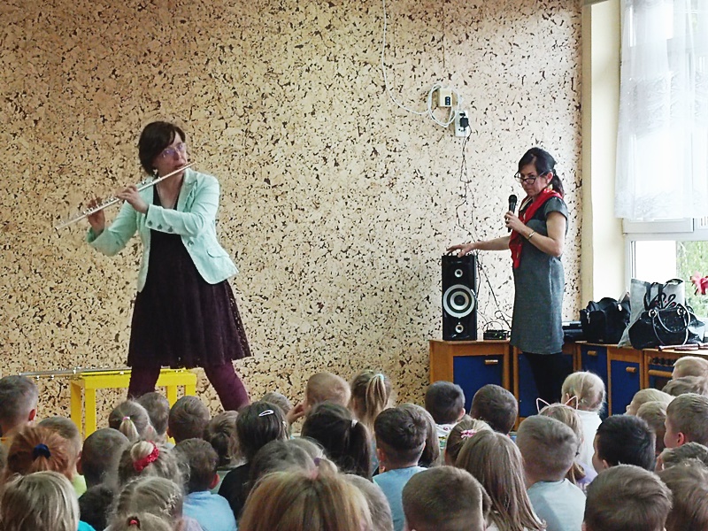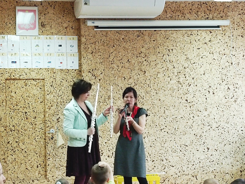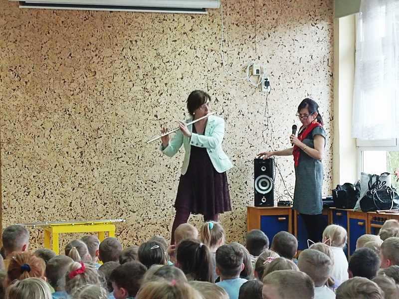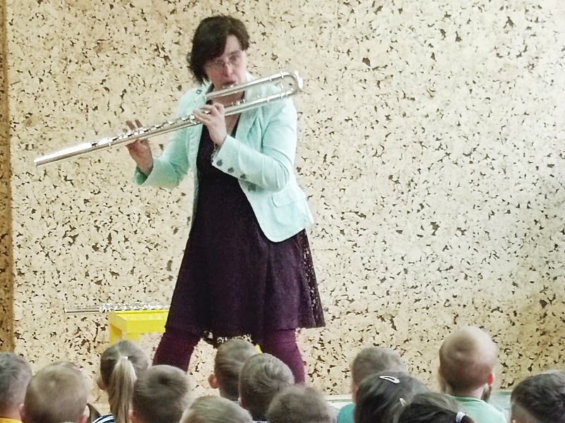 Podczas majowego koncertu przedszkolaki miały okazję zapoznać się z wyglądem, budową oraz dźwiękiem jednego z najbardziej popularnych instrumentów muzyki poważnej i artystycznej jakim jest flet. Flet to instrument dęty drewniany. Najbardziej znane odmiany fletów to flet poprzeczny (mniejszy piccolo) oraz prosty.