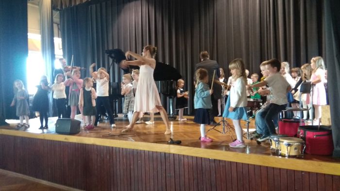 W dniu dzisiejszym, w Gminnym Ośrodku Kultury w Kurowie, odbyło się pierwsze spotkanie z serii "Wędrówki po Muzykolandii". Dzieci posłuchały pięknego koncertu granego na skrzypcach, werblach i fortepianie. Podziwiały również niesamowity taniec baletnicy. Przy okazji, przedszkolaki zostały zaproszone do ruchowej - muzycznej rozgrzewki.
