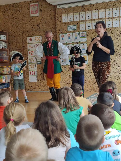 Pani "Muzyczka" zaprosiła dzieci nad morze. Przedszkolaki poznały kaszubskie stroje i tańce ludowe, zagrały na diabelskich skrzypcach, śpiewały po kaszubsku, a na zakończenie - wesoło bawiły się z piratami.