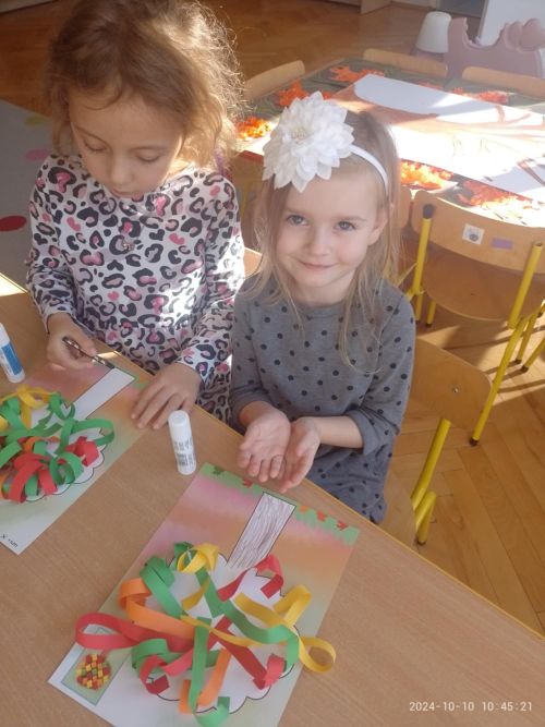 Dnia 10 października przedszkolaki z grupy VI obchodziły Światowy Dzień Drzewa. W tym dniu odbyły się zajęcia związane z tematyką drzew, dzieci poznały budowę drzewa i dowiedziały się jak wielkie znaczenie mają drzewa dla człowieka, zwierząt i przyrody. W czasie zabaw badawczych w ogrodzie przedszkolnym dzieci oglądały drzewa, dotykały kory, liści i owoców. Na zakończenie przedszkolaki wykonały wspólną prace plastyczną „Jesienne drzewo” według własnego pomysłu. Święto Drzewa to doskonała okazja aby kształtować postawę ekologiczną wśród najmłodszych dzieci.