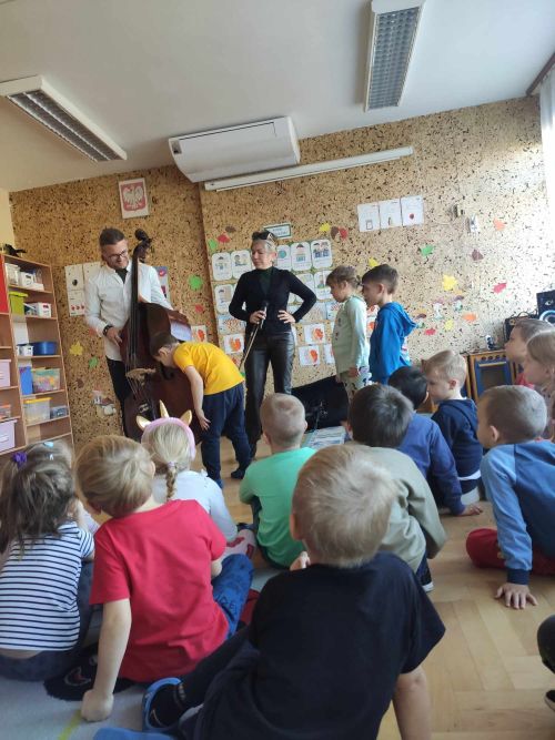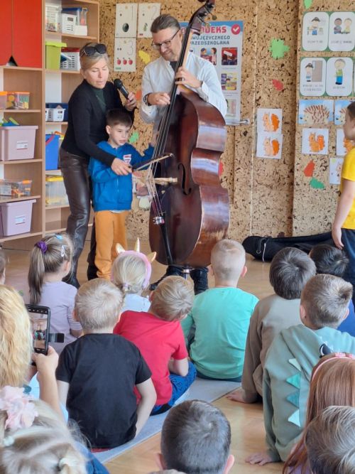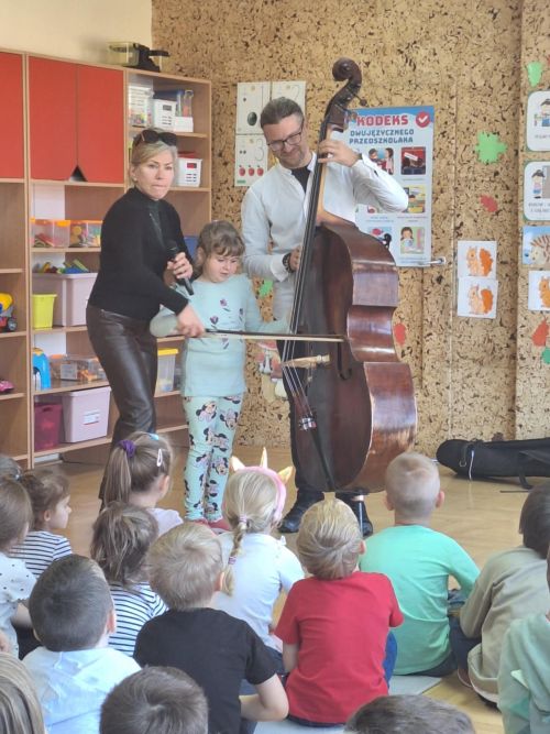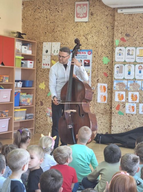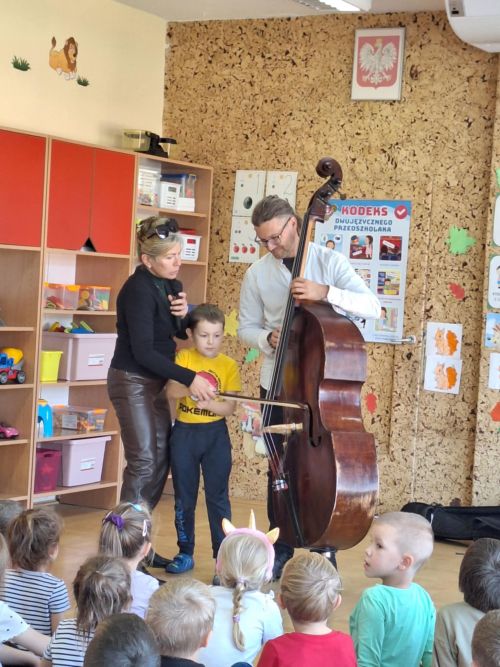 spotkanie z muzyczkąOpublikowano: 25 październik 2024 | E.Pi. | Drukuj | Odsłony: 865Tematem dzisiejszej audycji była "Muzyczna podróż po Europie". Przedszkolaki poznały budowę i dźwięki kontrabasu, oraz próbowały na nim grać. Poprzedni artykuł Następny artykuł