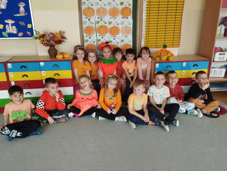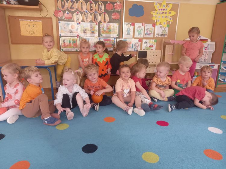 Dzieci przyniosły do przedszkola dynie i ubrały się na kolor pomarańczowy.