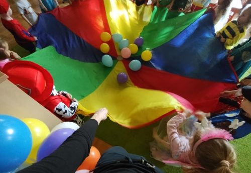 Już od rana, w naszym przedszkolu pojawiły się wesołe postacie z bajek: wróżki, królewny, piraci, policjanci...i wiele innych. Kolorowy wystrój sal i skoczna muzyka zachęcały dzieci do wspólnych zabaw. Były również konkursy i słodki poczęstunek - następny bal: już za rok !!!