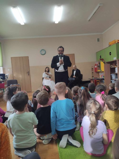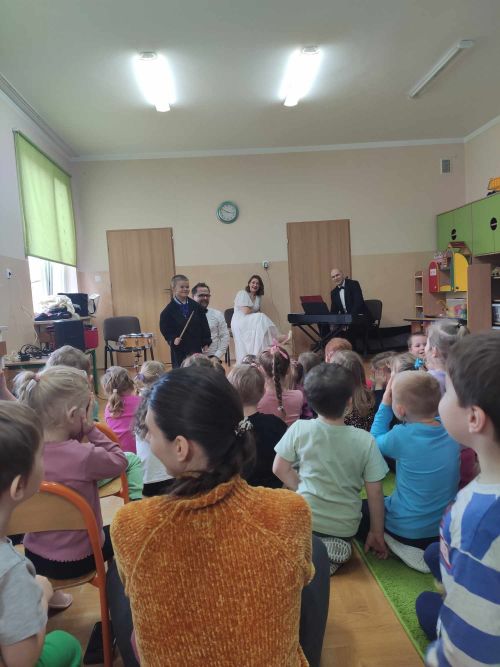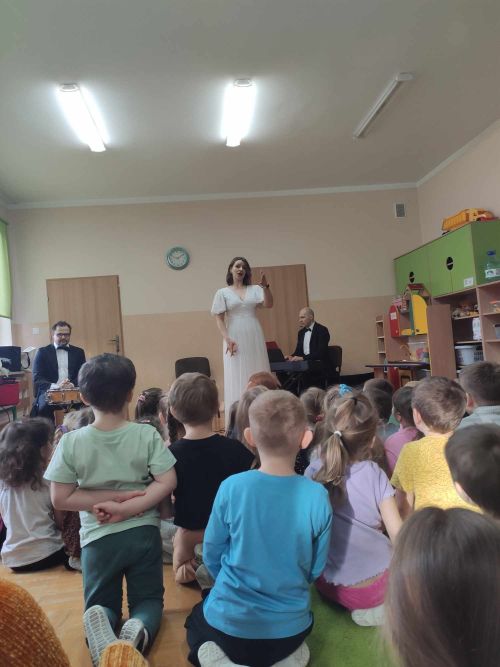 Przedszkolaki miały okazję posłuchać pieśni operowej, oraz poznały nazwy głosów męskich (m.in. tenor, baryton i bas) i żeńskich (sopran, mezzosopran i alt). Muzycy zaprosili dzieci do udziału w zabawach rytmicznych. Na zakończenie, przedszkolaki zagrały w prawdziwej orkiestrze.
