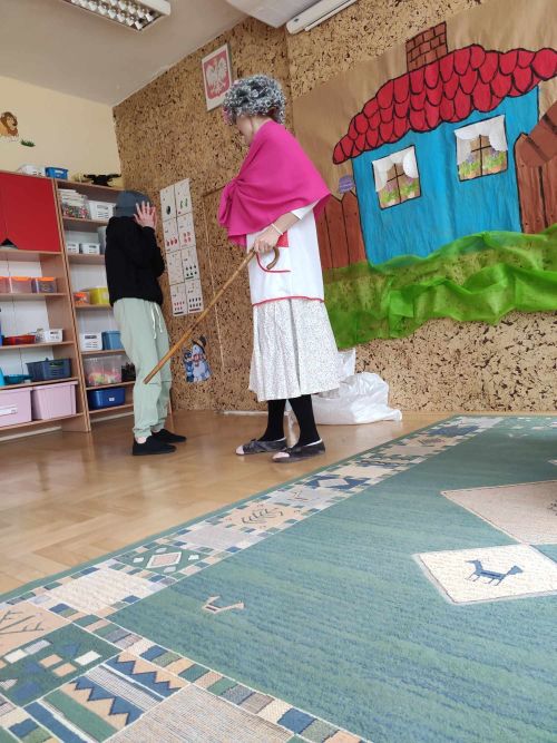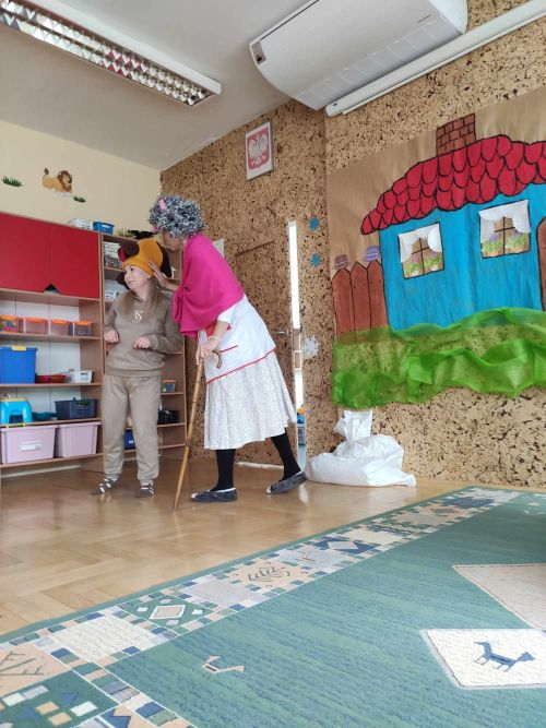 "Tłusty Czwartek" w naszym przedszkolu obchodziliśmy uroczyście, wesoło i słodko. Dzieci poznały tradycję i zwyczaje związane z tym świętem. Najważniejszym punktem dnia było przedstawienie teatralne pt. "Pączki i faworki u babci Honorki", w wykonaniu naszych nauczycielek. Nie mogło też zabraknąć slodkiego poczęstunku - pysznych faworków usmażonych przez panie kucharki.
