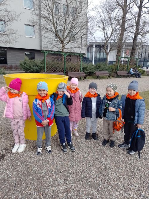 Przed seansem, korzystając z pięknej pogody - przedszkolaki wybrały się na spacer po parku.