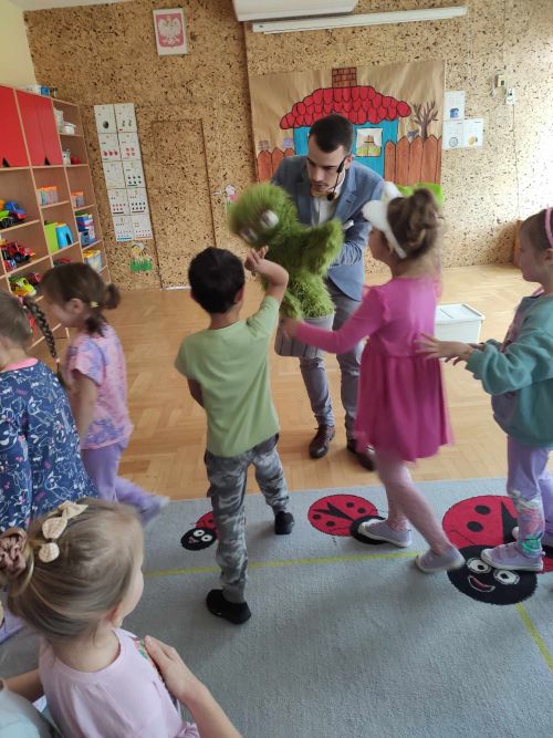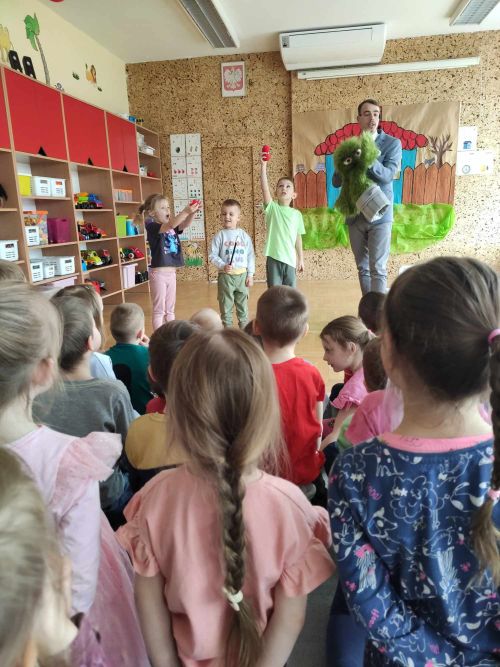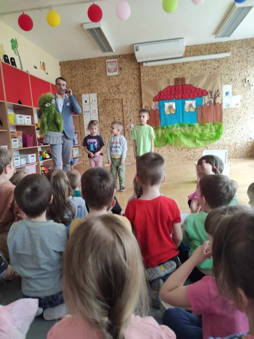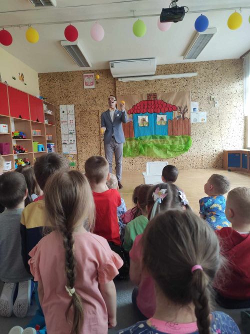 występ magikaOpublikowano: 27 marzec 2025 | E.Pi. | Drukuj | Odsłony: 743W przedszkolu gościliśmy dzisiaj magika i brzuchomówcę Oskara, wraz z kolegą Fredim. Przedszkolaki polubiły włochatego, zielonego stworka i z chęcią brały aktywny udział w magicznych sztuczkach. Poprzedni artykuł Następny artykuł