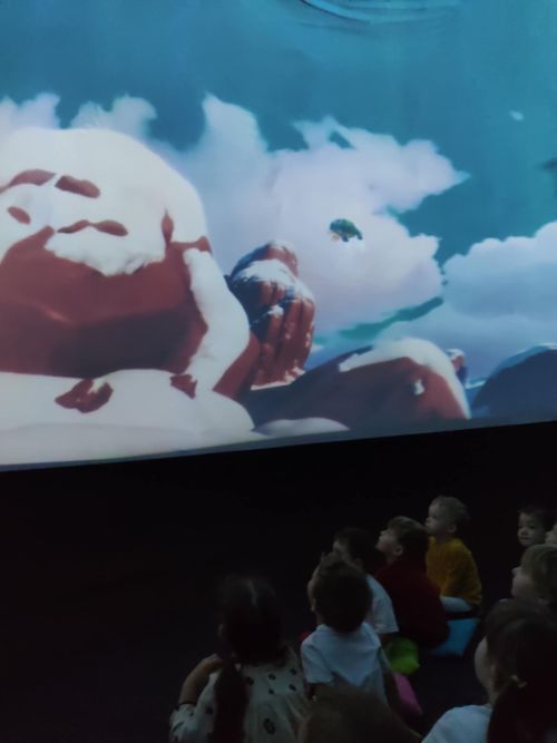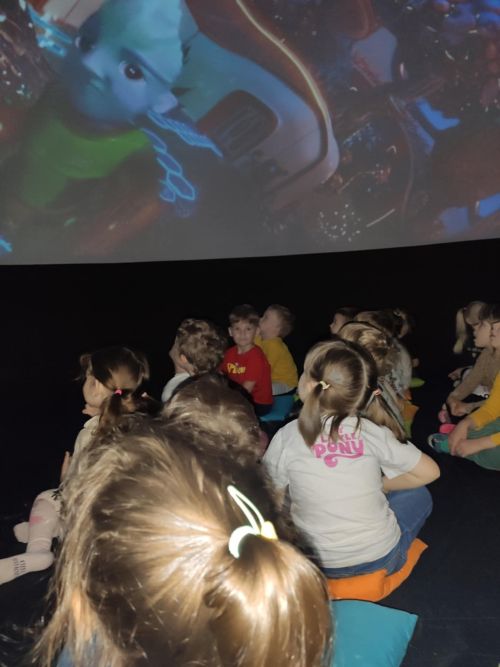 W naszym przedszkolu gościliśmy mobilne planetarium, które zabrało dzieci w niezwykłą podróż. Film "Stellarsi - misja: las” został starannie zaplanowany pod kątem dostępności dla najmłodszego widza. Temat pokazu "Czego rośliny potrzebują do życia?" pozwolił dzieciom wzbogacić swoją wiedzę z zakresu różnorodności środowisk na Ziemi oraz kluczowej roli lasów. Wszystkie przedszkolaki obejrzały film z wielkim zainteresowaniem.
