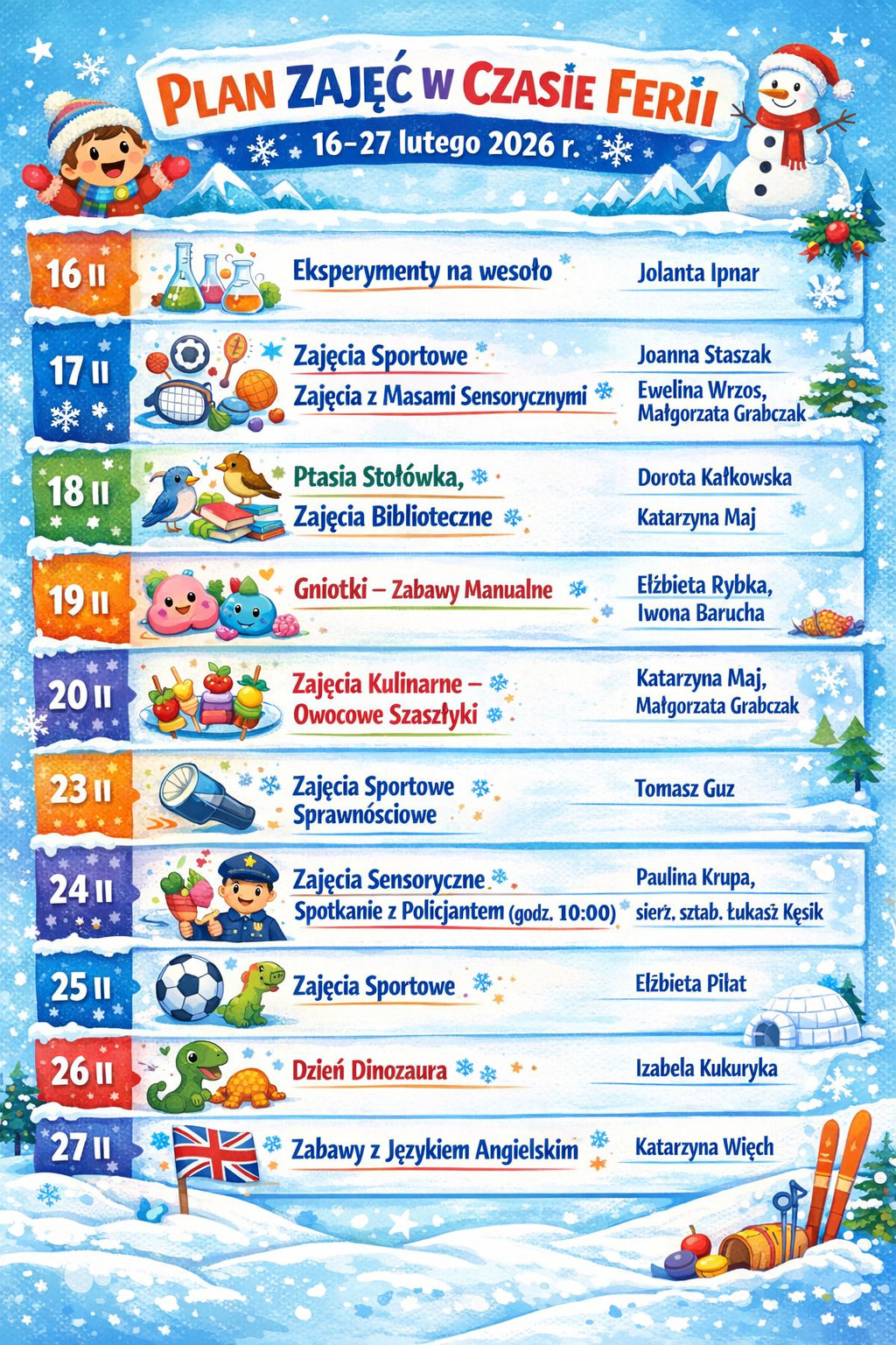 FERIE 2026Opublikowano: 16 luty 2026 | KaDo | Drukuj | Odsłony: 344 Poprzedni artykuł Następny artykuł
