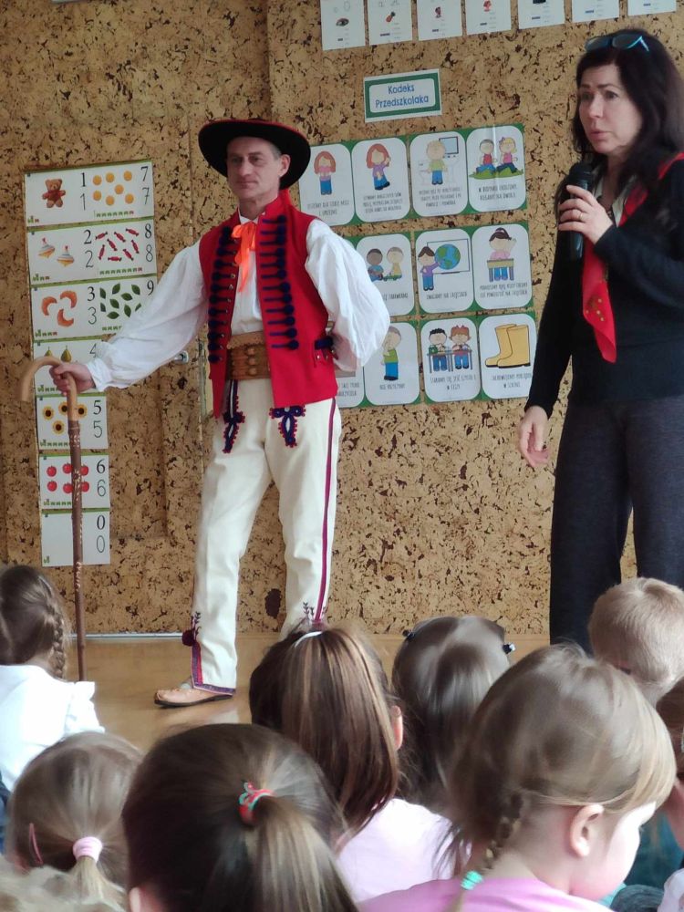 Dziś w naszym przedszkolu odbyło się kolejne już spotkanie z muzyką. Dzieci miały możliwość oglądania tradycyjnych strojów krakowskich. Odwiedził nas także Lajkonik.