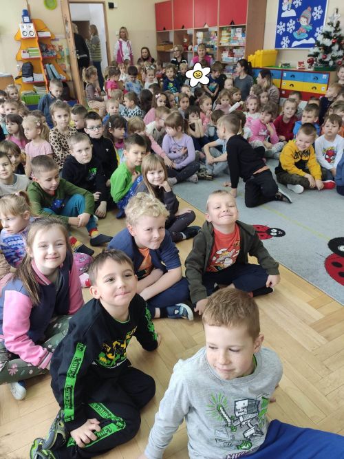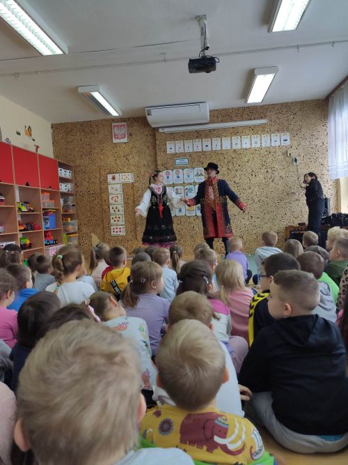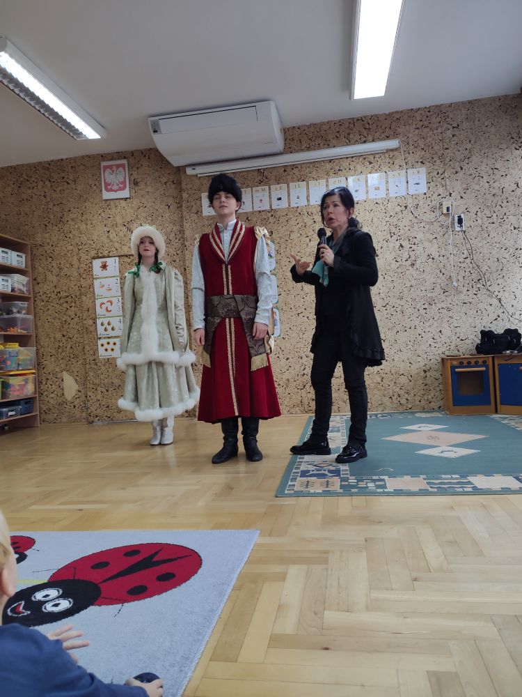 Przedszkolaki podziwiały ubiór polskiej szlachty, śpiewały kolędy i pastorałki, a także uroczyście odtańczyły poloneza.