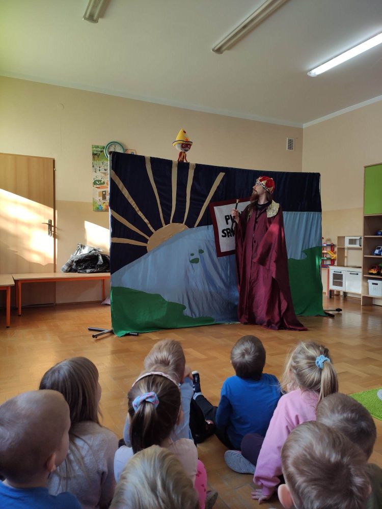 Dzisiaj, nasze przedszkole odwiedzili artyści, którzy zaprezentowali spektakl pt. "Planeta Samozdrowie". Główni bohaterowie pokazali dzieciom, jakie skutki niesie ze sobą spożywanie zbyt dużej ilości słodyczy. Dzieci aktywnie brały udział w przedstawieniu - odpowiadały na ptyania dotyczące zdrowego odżywiania, wykonywały ćwiczenia ruchowe. Spektakl bardzo się dzieciom podobał, było dużo śmiechu, a na zakończenie - gromkie brawa.