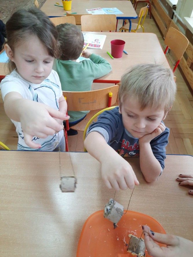 Przedszkolaki z oddziału V pamiętają o dokarmianiu ptaków i dlatego postanowiły przygotować przysmaki dla skrzydlatych przyjaciół. Dzieci zobowiązały się, że będą dokarmiać ptaki przez całą zimę, aby im niczego nie zabrakło.