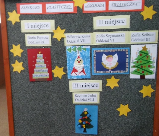 W pierwszym tygodniu stycznia dzieci ze wszystkich oddziałów głosowały na najładniejszą pracę plastyczną pt." Ozdoba świąteczna". W głosowaniu wzięło udział 188 dzieci.