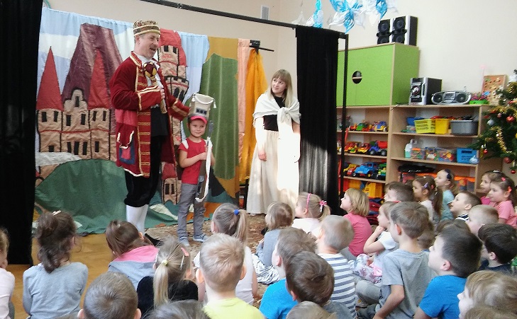 We wtorek 09.01.2018r. przedszkolaki obejrzały teatrzyk pt. Niesforne księżniczki". Bajka w wykonaniu aktorów z Teatru Brzechwy z Lublina bardzo podobała się małym widzom.