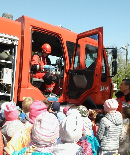 W maju strażacy mają swoje święto. W dniu 12 maja dzieci z przedszkola wybrały się z wizytą do strażaków z OSP Kurów. Przedszkolaki złożyły życzenia i podarowały strażakom własnoręcznie wykonany upominek. Później dzieci zwiedzały remizę strażacką, wyposażenie wozów strażackich. Był także pokaz gaszenia pożaru. Wizyta dostarczyła dzieciom moc niezapomnianych wrażeń.
