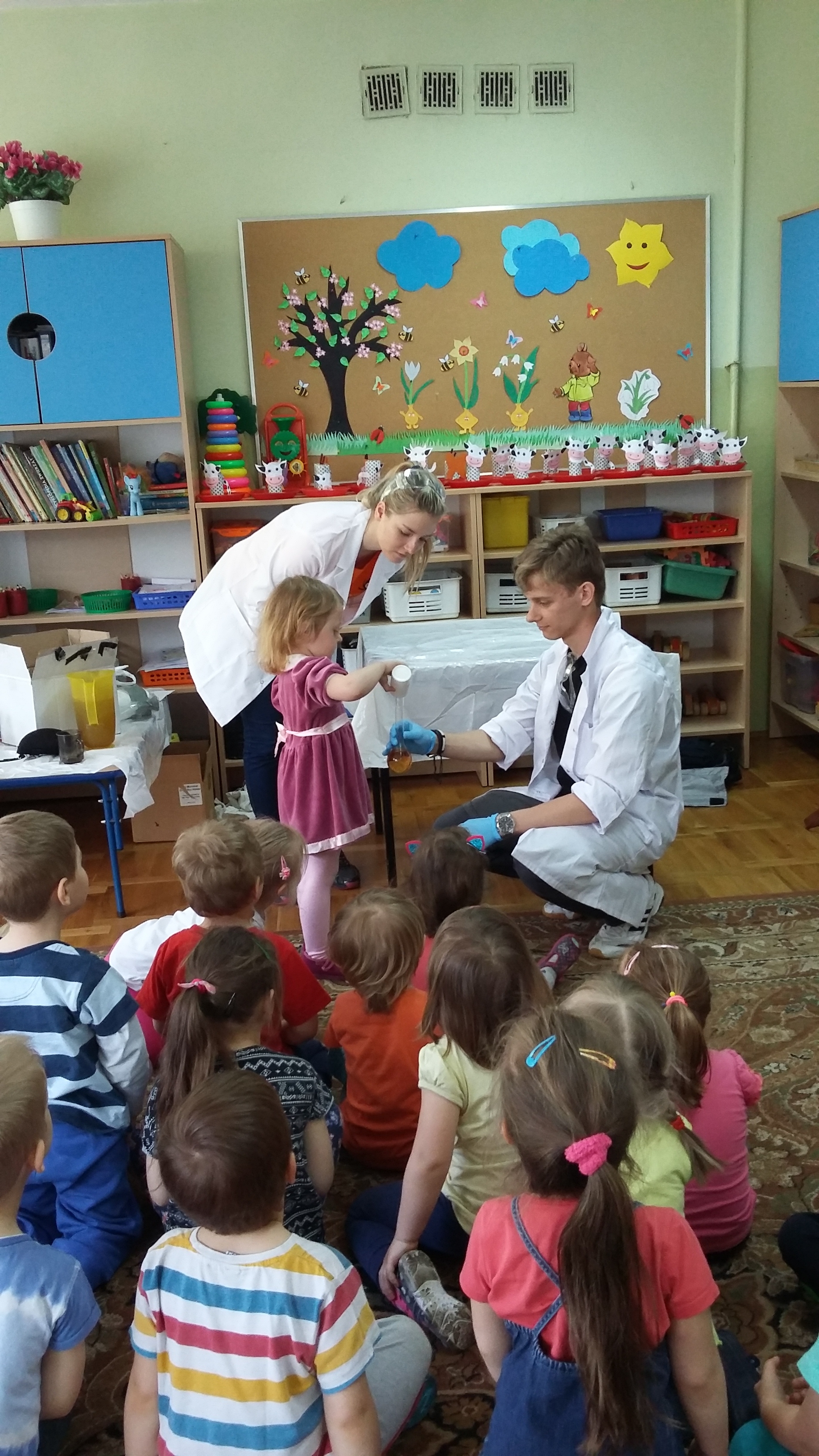 W dniach 9 i 16 maja w naszym przedszkolu odbyły się pokazy chemiczne zorganizowane w ramach projektu - Szkoły w Projekcie Edukacyjnym realizowanym w ramach programu "PROJEKTOR - wolontariat studencki".