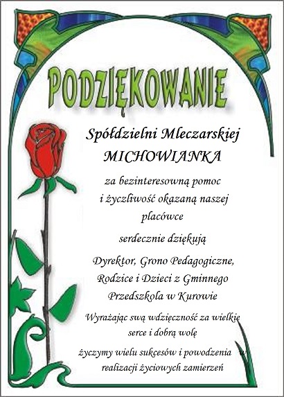 GMINNE PRZEDSZKOLE IM. CZESŁAWA JANCZARSKIEGO W KUROWIE WSPOMAGA KLINIKĘ BUDZIK
