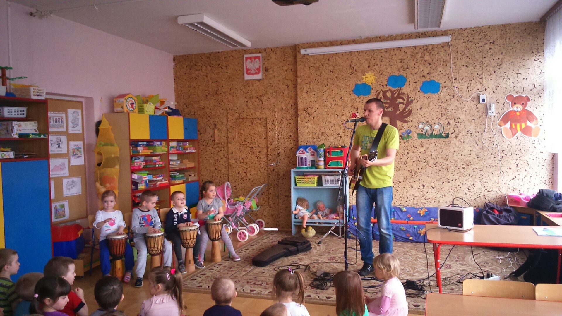 Dnia 20 kwietnia w naszym przedszkolu odbył się koncert muzyczny w wykonaniu pana Adama Witkowicza pt." Magiczne słowa - wychowanie dzięki muzyce". Dzieci bawiły się przy piosenkach o dobrym wychowaniu oraz grały na instrumentach muzycznych.