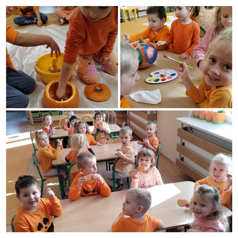 W naszym przedszkolu odbył się dziś Dzień Dyni! Dzieci przyszły ubrane w pomarańczowe stroje, a sale zostały udekorowane dyniowymi ozdobami. Przedszkolaki brały udział w dyniowych zabawach dydaktycznych, ruchowych, badawczych, a także wykonywały prace plastyczne, dzięki czemu poszerzały swoją wiedzę i doskonaliły umiejętności. Nie zabrakło też smakowitych przekąsek z dynią w roli głównej. To był dzień pełen uśmiechu, kreatywności i wspólnej zabawy!