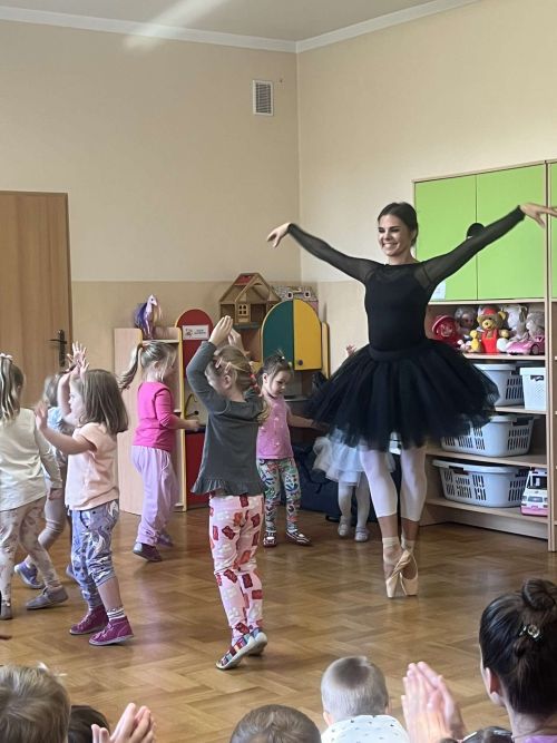 Atrakcją dla przedszkolaków był wspólny występ z baletnicą.